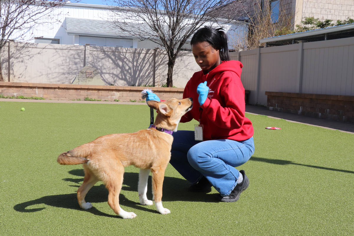 Alyssa is happy to jump in wherever she’s needed most. From cleaning and caring for puppies in the ward to walking dogs and organizing “playgroups,” she approaches every task with the same mindset: each animal deserves attention, patience, and a moment to just be a dog. “I try to give every one their time,” she said. “Let them stretch, play, have toys, just feel a little normal.”Alyssa is happy to jump in wherever she’s needed most. From cleaning and caring for puppies in the ward to walking dogs and organizing “playgroups,” she approaches every task with the same mindset: each animal deserves attention, patience, and a moment to just be a dog. “I try to give every one their time,” she said. “Let them stretch, play, have toys, just feel a little normal.”