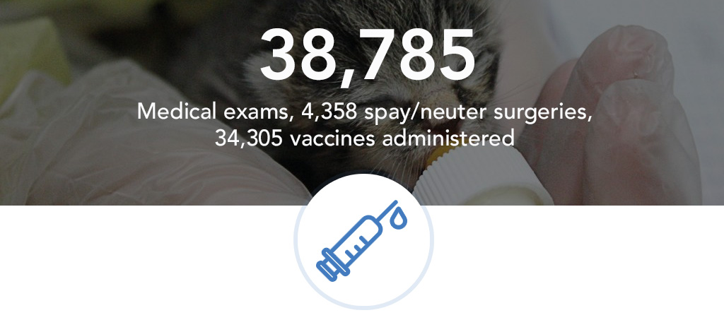 At our AAHA-accredited Pet Health Centers, we deliver expert medical treatment, rehabilitation and compassionate care to every animal. Our Freed Special Recovery Center treated 1,251 animals suffering from extremely dangerous conditions, totaling 17,079 days of hospitalization.