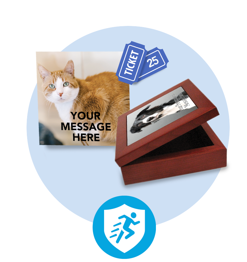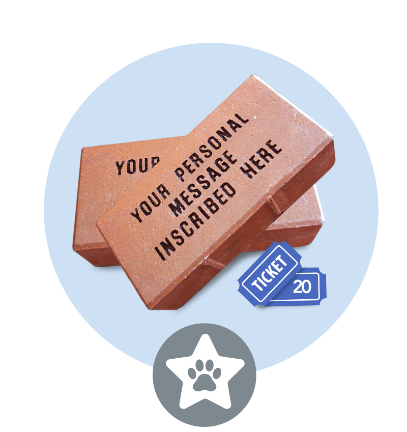 For reaching this milestone, you’ll receive a Customized Ceramic Tile with a full color photo of your four-legged friend. Commemorate a beloved pet as a tribute in our shelter gallery. You will also receive a second tile as a keepsake + 25 Tickets to our Chance Auction.