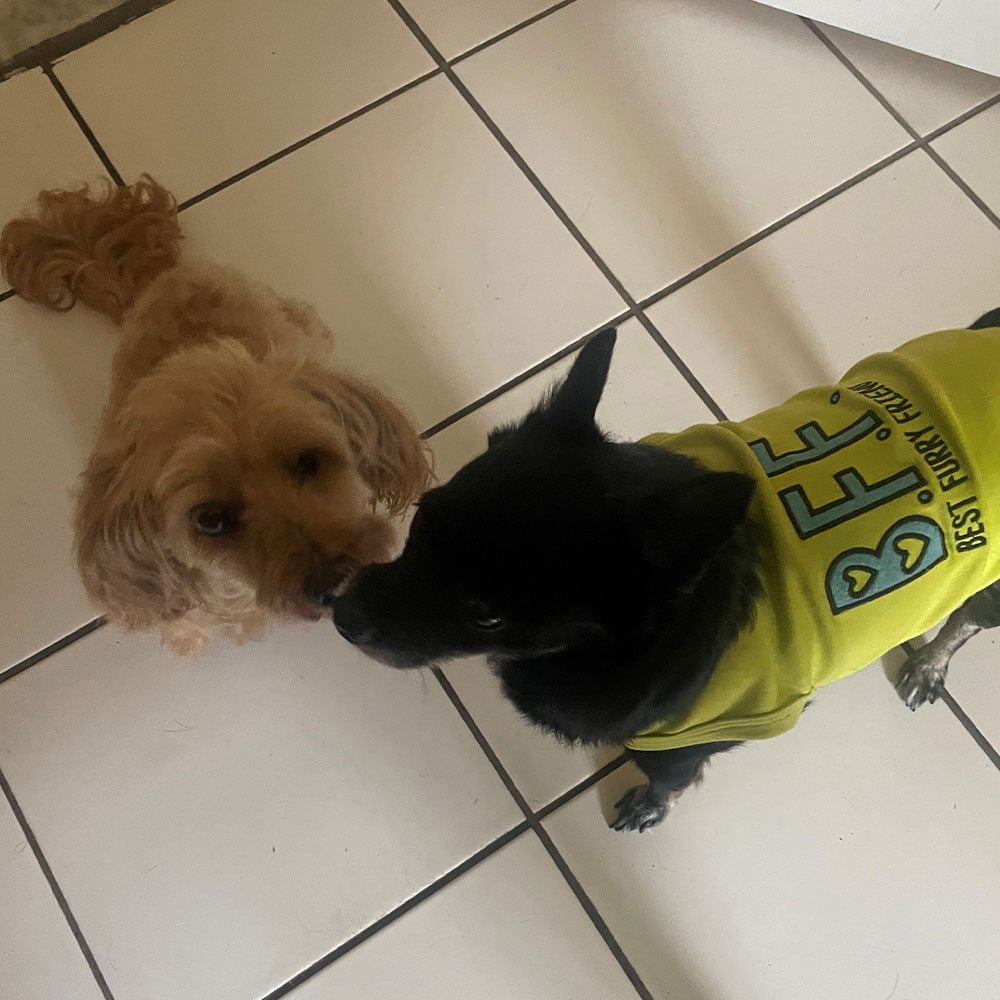 Little Man has a new canine sister, Suzy, and they’re getting along beautifully! Although Suzy was shy at first, Little Man now greets her each morning with a tail wag and a sweet hello. They love their walks together — especially squirrel-chasing at the nearby school! Afterward, Little Man’s favorite way to recharge is cuddling up for a cozy nap.