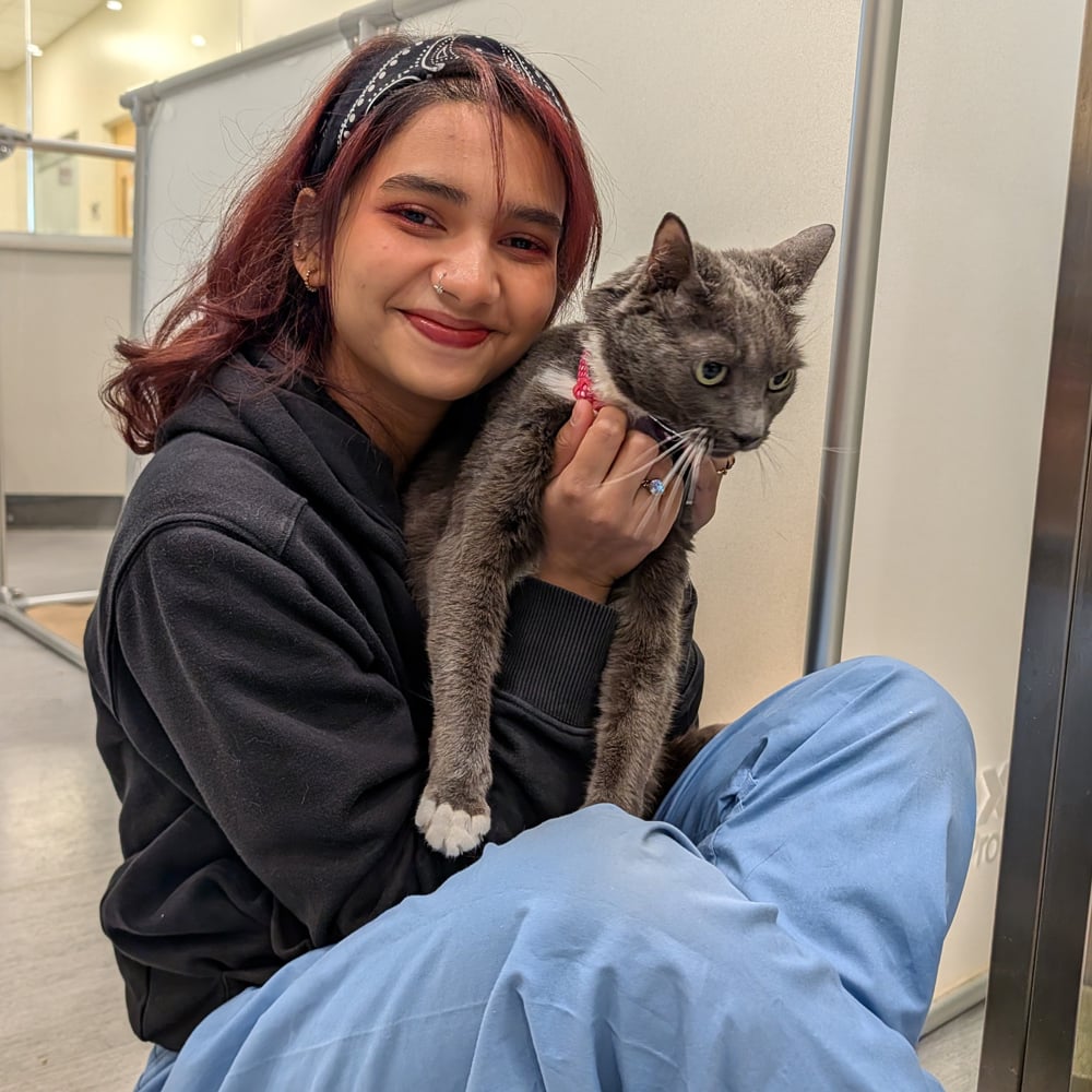 Clio was admitted to North Shore Animal League America’s care in late October 2024 because her adopter at the time travelled too often to attend to her medical care. Clio has feline hyperesthesia syndrome (FHS), in which nerves are overstimulated and it can manifest as an obsessive-compulsive disorder. Her condition is managed through a twice-daily medication, calming her so that Clio is the very definition of a lap cat.