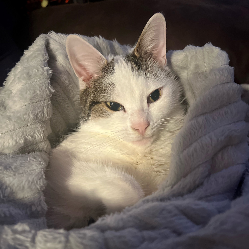 Cricket’s bloodwork revealed a significantly depressed thyroid function, and he was diagnosed with congenital hypothyroidism, a condition rarely seen in cats. The thyroid hormone is important for the development of the nervous and skeletal systems; kittens lacking this hormone will have related symptoms, such as mental dullness and smaller than usual proportions. If left untreated, this condition could be fatal. “Hypothyroidism is very treatable,” said Dr. Mark Verdino, Animal League America Chief of Veterinary Staff, “especially when it is caught early. And with a daily dose of synthetic thyroid hormone, many of Cricket’s symptoms can be reversed.” Cricket will require this medication for the rest of his life. Thank you for sponsoring this little fellow!