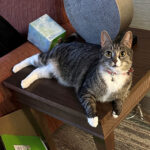 Jacque is home! Now called Boo, he quickly captured the attention of Matt and Tara by stretching his paw underneath the door to them on their adoption visit. When they learned he needed special care, they were sold! Matt explained, “It’s a wonderful thing to share our love with a cat in need of a warm, caring household.” Boo is now having fun exploring his world and his parents tell us they adore “his youthful enthusiasm, his playfulness, and his tenderness.”
