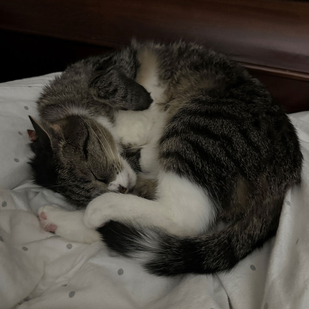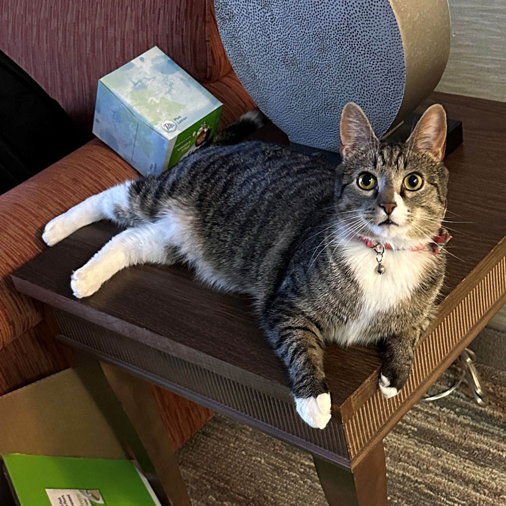 Jacque (aka Boo) recently had an echocardiogram, revealing he will need to have a balloon valvuloplasty due to his pulmonic stenosis. Despite his condition, however, “Boo has such a positive, upbeat attitude,” dad Matt shared. Boo shows affection by snuggling on the couch or in bed, making biscuits while purring, and his family is incredibly grateful to the Pet Sponsorship Program for making his upcoming procedure possible, ensuring he continues to flourish.