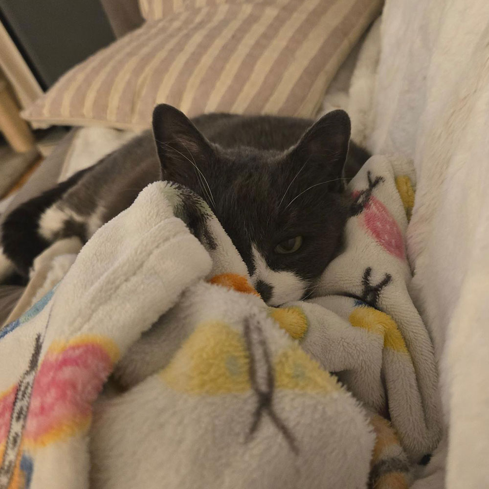 Keke just turned 10 and while his naps may be getting longer, he still surprises his family with his playful energy, especially when it comes to tug-of-war with his favorite piece of twine or chasing a ball across the room. Keke also loves cozying up in boxes for a good snuggle. “He’s thriving,” shared mom Marybeth. “As always, he brings so much happiness to our home.”