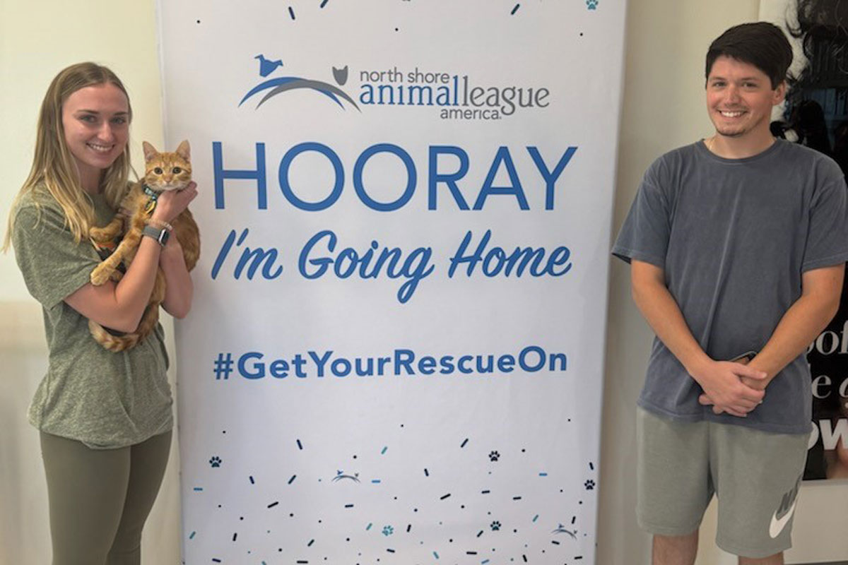 The skin along his upper front limb had been ripped away — a brutal injury known as a degloving wound. By the time he reached North Shore Animal League America, most of the tissue along his leg was already gone.