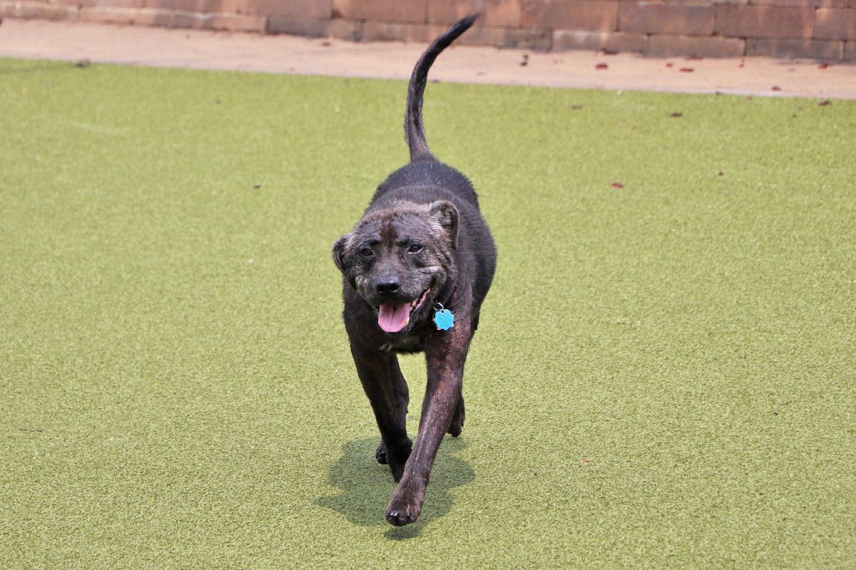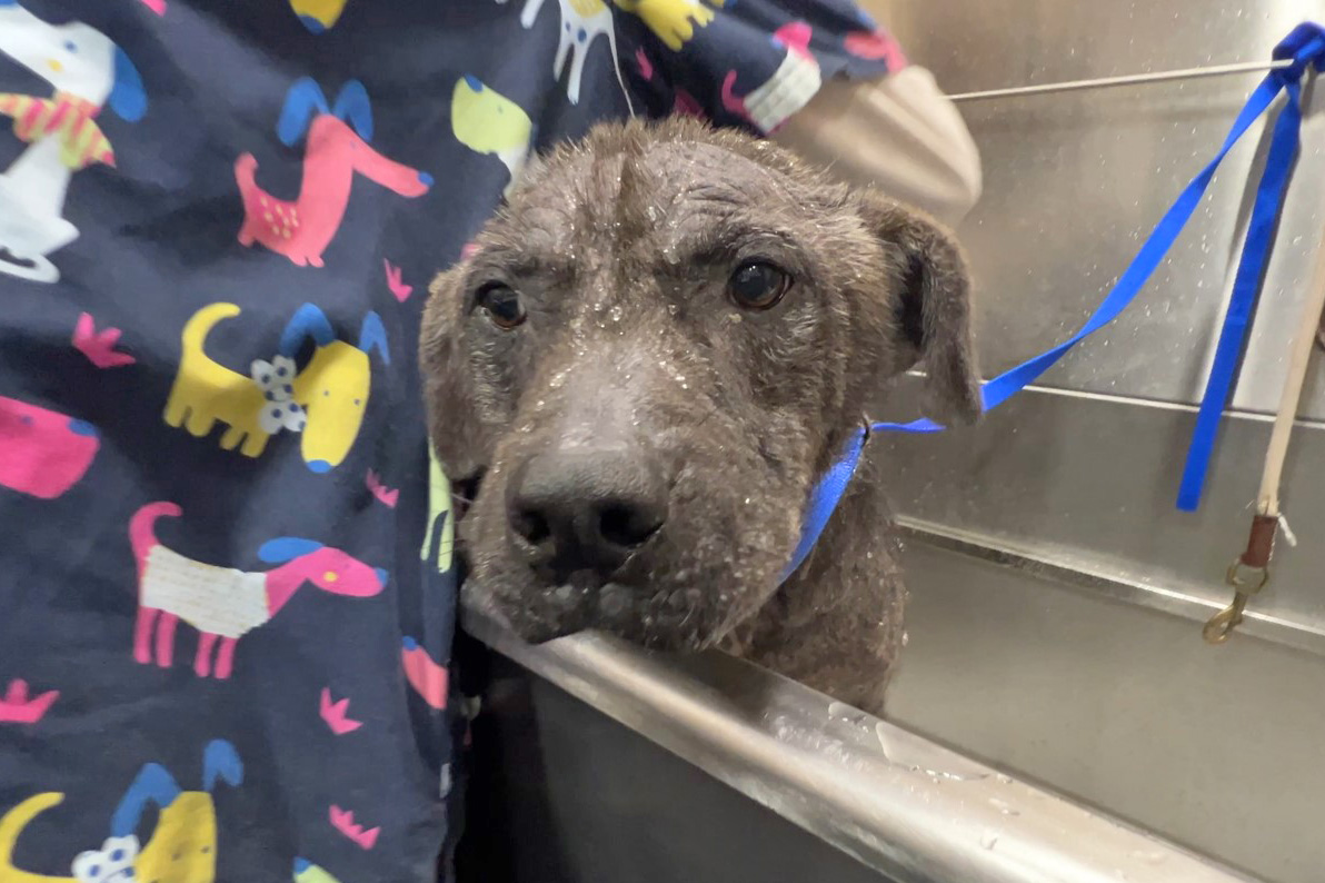 From the moment he first arrived at North Shore Animal League America, Tantor greeted us with a trusting and gentle demeanor, while his skin told a heartbreaking story. Picked up off the streets by our shelter partner Georgia Transport Allies, he had no fur, inflamed skin and a significant leg injury.